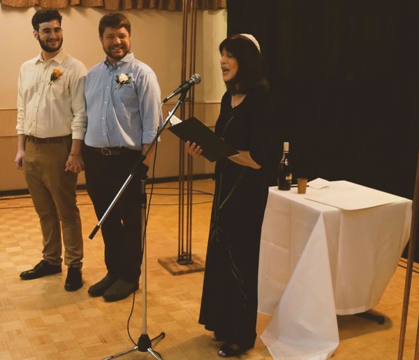 Audrey's deep and soulful connection to Jewish ritual brought a profound sense of tradition and spirituality to the day while also being inclusive of us as a same-sex couple. She took the time to truly get to know us, ensuring that every aspect of the ceremony was personalized and reflective of our journey to marriage. Her exceptional speaking and singing captivated everyone present, creating an atmosphere of warmth, joy, and love and our attendees still fondly remember how beautiful her singing was. We are forever grateful for her guidance, kindness, and the beautiful memories she helped us create.